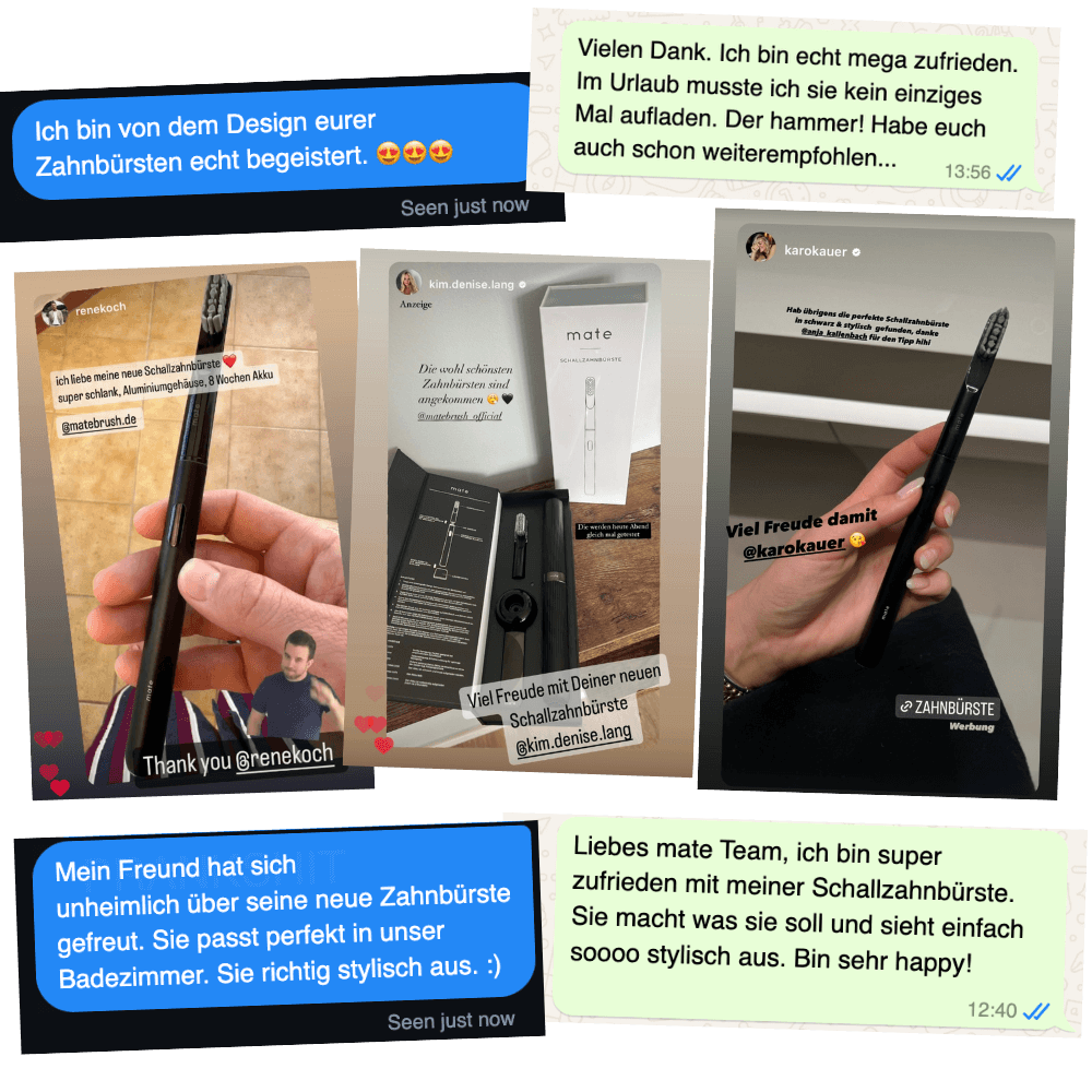 - Richtig lagern: Lagere die mate sauber und trocken. Vermeide feuchte Zahnputzbecher. Dort sammelt sich Wasser, das den Ladering beschädigt.
